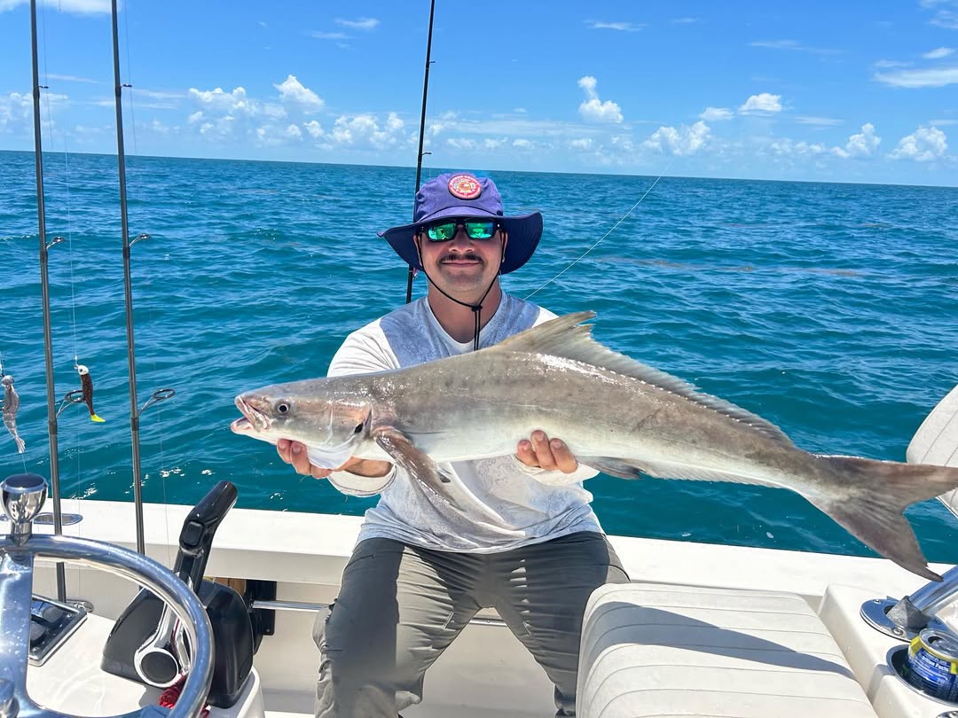 Cobia: While we primarily target them offshore, cobia sometimes venture into the bay, especially around deeper channels and structures. These curious fish are suckers for live bait and will often follow hooked fish right up to the boat. They grow big – 30 to 50 pounders aren't uncommon – and put up a stubborn, powerful fight. Keep your eyes peeled for their distinctive brown coloration, especially around markers and buoys where they like to hang out.